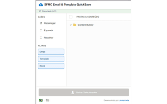 ส่วนขยายนี้มีอินเทอร์เฟซที่ใช้งานง่ายซึ่งสะท้อนโครงสร้างโฟลเดอร์ของ Marketing Cloud ทำให้การนำทางเป็นไปอย่างชัดเจน รองรับทั้งภาษาโปรตุเกสและภาษาอังกฤษ เพิ่มความสะดวกในการเข้าถึงสำหรับผู้ใช้ที่หลากหลาย ตัวเลือกการค้นหาและการกรองขั้นสูงช่วยให้ผู้ใช้สามารถค้นหาทรัพย์สินเฉพาะได้อย่างมีประสิทธิภาพ นอกจากนี้ เครื่องมือนี้ยังให้ความสำคัญกับความเป็นส่วนตัวของข้อมูล โดยดำเนินการทั้งหมดในเครื่องและรับประกันว่าไม่มีข้อมูลถูกส่งไปยังเซิร์ฟเวอร์ของบุคคลที่สาม โดยรวมแล้ว SFMC Email & Template QuickSave เป็นแหล่งข้อมูลที่มีค่า สำหรับผู้ที่ทำงานภายใน Salesforce Marketing Cloud.